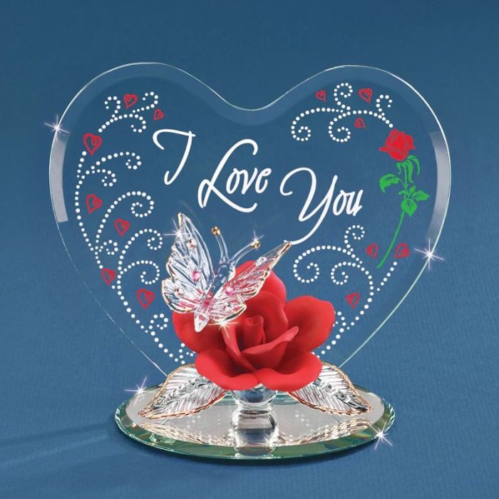 Celebrate a special relationship with this unique handcrafted red rose and butterfly figurine.
